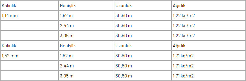 NB: Yalnızca Çelik Döşeme/Mekanik Birleşim sistemlerde geçerlidir.